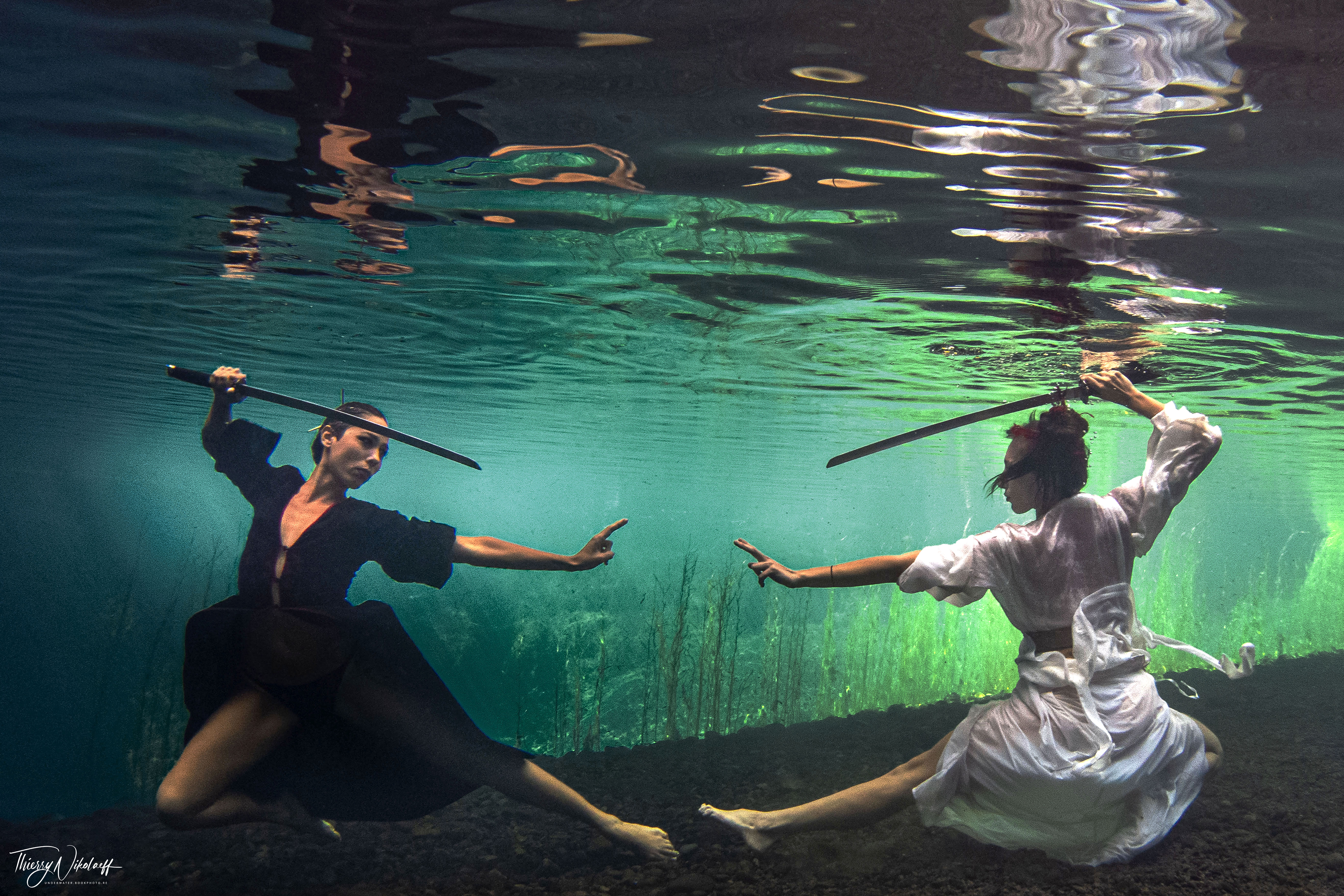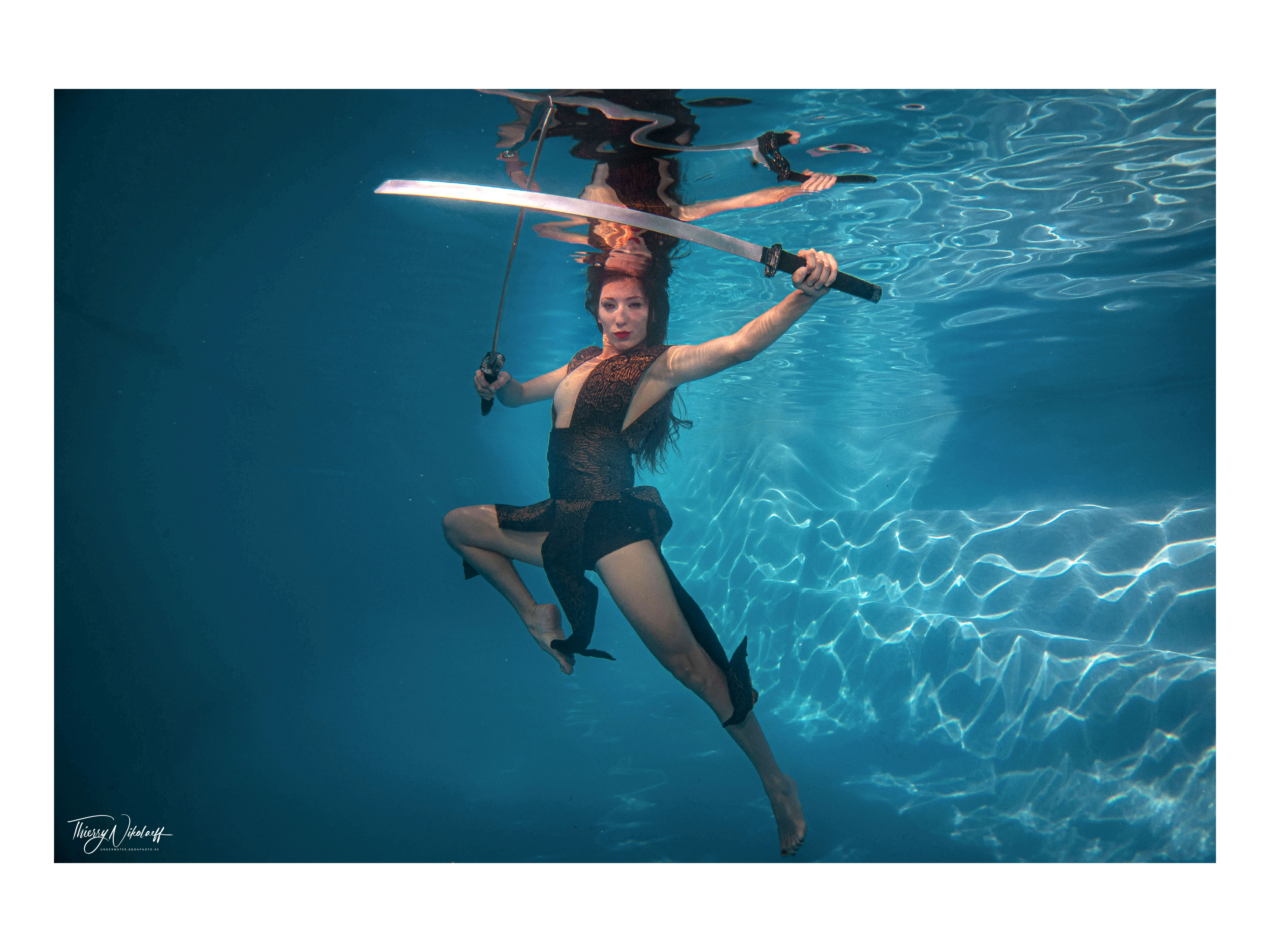 “Mais pour réaliser ces clichés, il faut d’abord s’entretenir avec le modèle pour connaître ses capacités physiques en milieu aquatique et ses désirs artistiques. J’accorde beaucoup d’importance à cet échange. Le choix du lieu de la prise de vue est déterminant. Travailler sous l’eau est un challenge permanent”.
