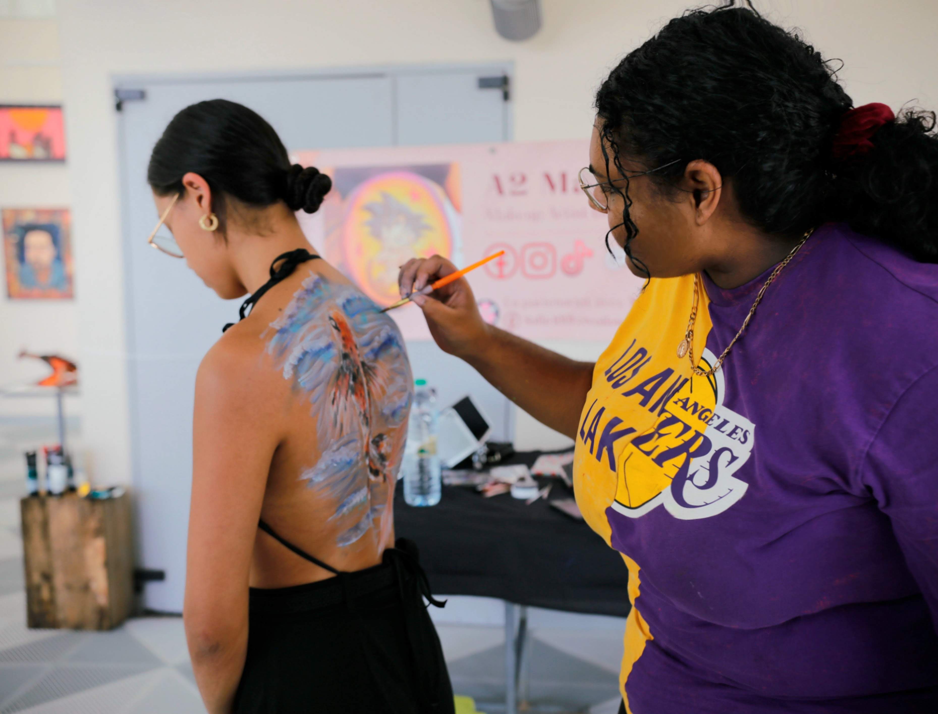 On lui doit ainsi des créations étonnantes : transformations complètes, illusions d’optique, et même un Black Panther peint sur le ventre de femmes enceintes. Des œuvres éphémères mais saisissantes.